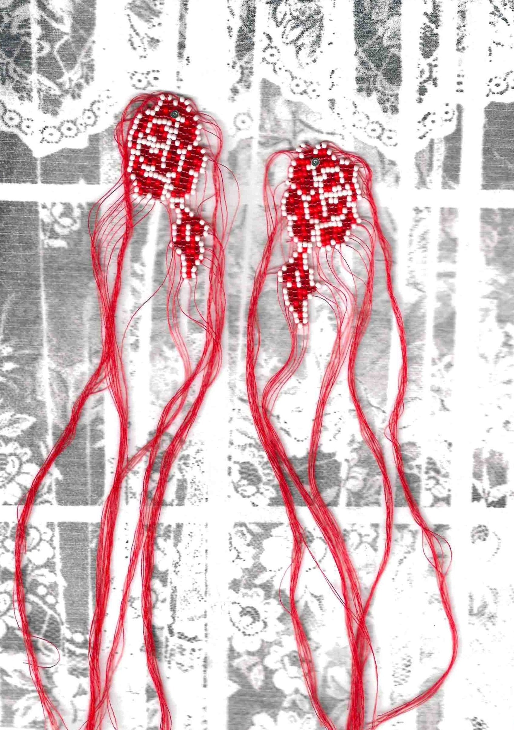 Hand-Beaded Red Thorn Earrings