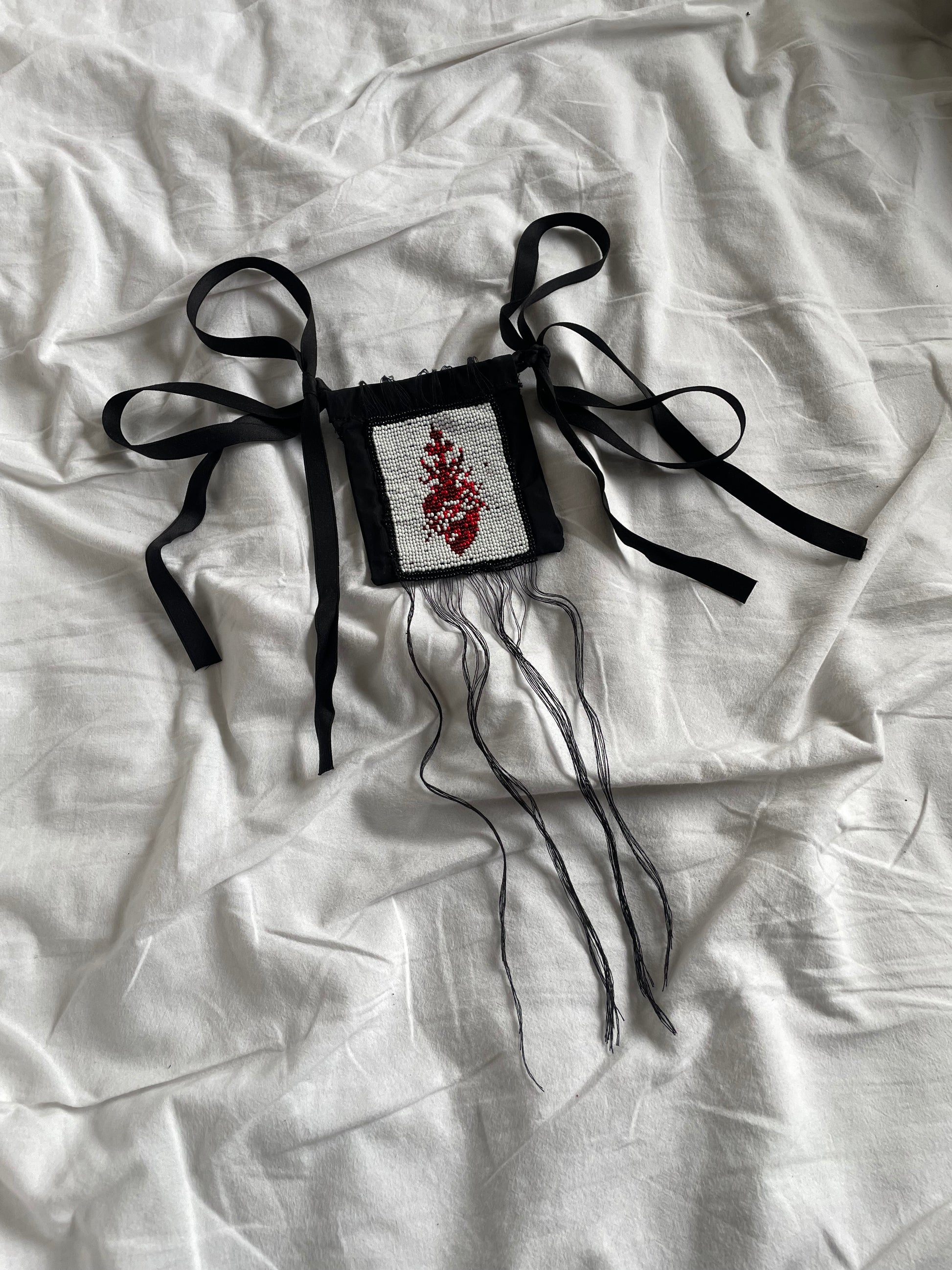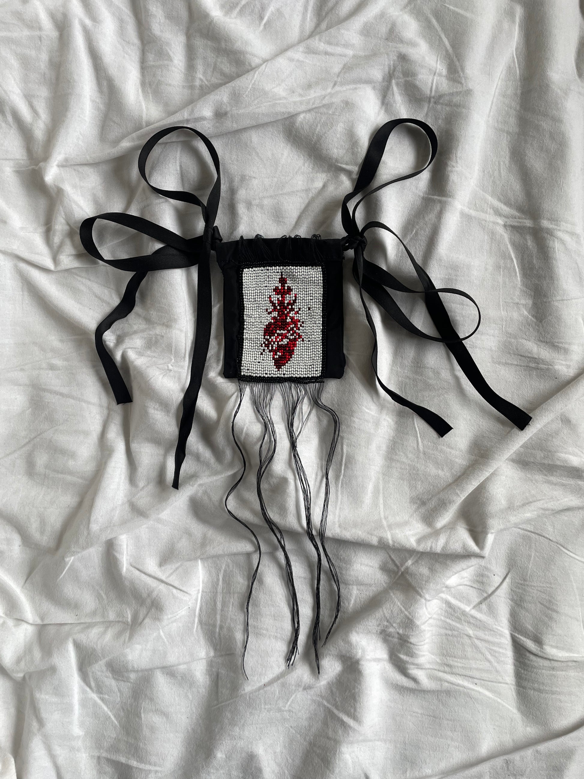 A handmade small cotton pouch with a drawstring top. The perfect size to hold your cigs.